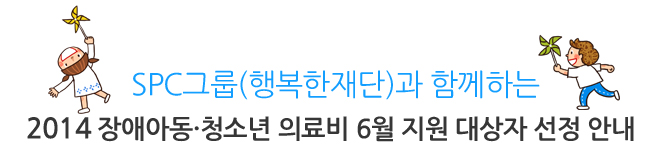[2014 장애아동‧청소년 의료비지원사업] 6월 선정 결과 안내