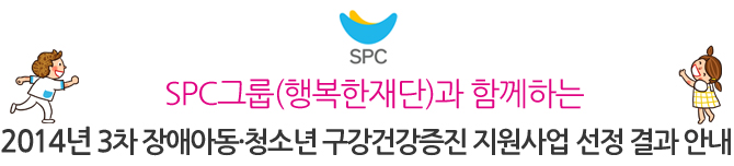 ‘2014년 3차 장애아동·청소년 구강건강증진 지원사업’의 최종 선정자를 아래와 같이 알려드립니다. 지원사업 신청자 중 최종 5명을 선정하게 되었습니다.
