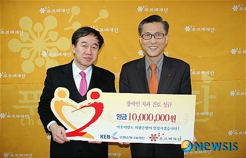 외환은행 나눔재단이 국내 최초 장애인 전문치과인 푸르메나눔치과에 장애인의 치료를 위해 써달라며 성금을 전달(사진)했다.