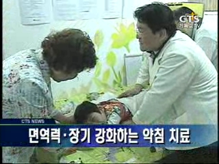 허 원장은 면역력을 높이고, 장기를 튼튼하게 하기 위해 개발한 약침으로 장애아동들을 치료합니다. 따끔한 주사바늘에 행여 아이들이 놀랄까봐 마사지와 위로의 말을 쉬지 않습니다.