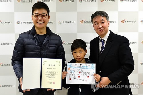 (서울=연합뉴스) 푸르메재단은 방송인 김성주씨와 아들 민국 군을 홍보대사로 위촉했다고 18일 밝혔다. 이들 부자는 앞으로 재단이 짓는 어린이재활병원 기금 마련을 위한 홍보 활동을 펼칠 계획이다. 2013.12.18 << 푸르메재단 제공 >>