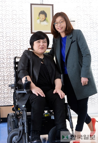 푸르메재단 홍보대사인 이지선(오른쪽) 작가와 김미연 장애인법연구회 사