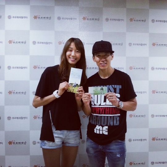 션은 4일 오후 자신의 트위터와 인스타그그램에 "2014년 만원의 기적 8번째 주인공 한송이 배구선수가 어린이재활병원 건립을 위해 함께 해주셨다"라며 한송이와 함께 찍은 사진도 올렸다.