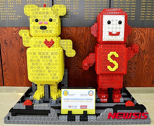 캐릭터 조형물은 푸르메재단 ‘기적의 어린이재활병원’ 페이스북의 꼬마영웅 캐릭터 중 ‘쿵쾅맨’과 ‘방끗걸’의 모습을 형상화한 것이다. 조형물 하나당 약 1500여 조각으로 구성돼 있으며 설계와 제작에 3일이 소요됐다. 시가 250만원 상당이다.
