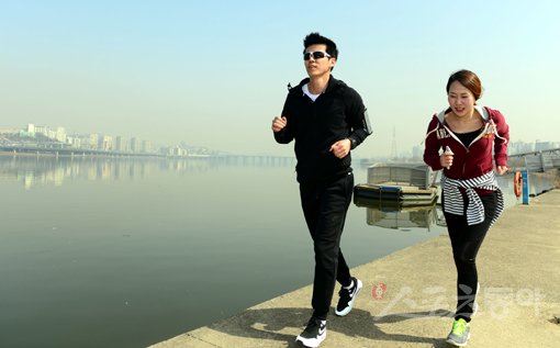 ‘대망의 날’ 20일 아침, 눈을 뜨자마자 날씨부터 체크했다. 쨍하게 맑다. 반갑지 않다. 전날 밤 부담감에 잠을 설친 탓일까. 어깨는 천근만근, 머리도 무겁다. 알아주는 ‘저질체력’으로 10km를 뛰겠다니. 과연 살아 돌아올 수 있을까. 걱정 반, 기대 반에 초조하게 날이 선 채 서울 용산구 한남동 한남대교 북단의 한강둔치 산책로로 향했다. 도착한 지 얼마 지나지 않아 가수 션이 모습을 드러냈다. ‘기부천사’라는 수식어답게 온화한 미소를 가득 머금은 얼굴이다. 워밍업의 몸놀림도 무척이나 가벼워 보인다. 지누션으로 활동하던 전성기 시절 그대로다. 아! 과연 살아 돌아올 수 있을까.