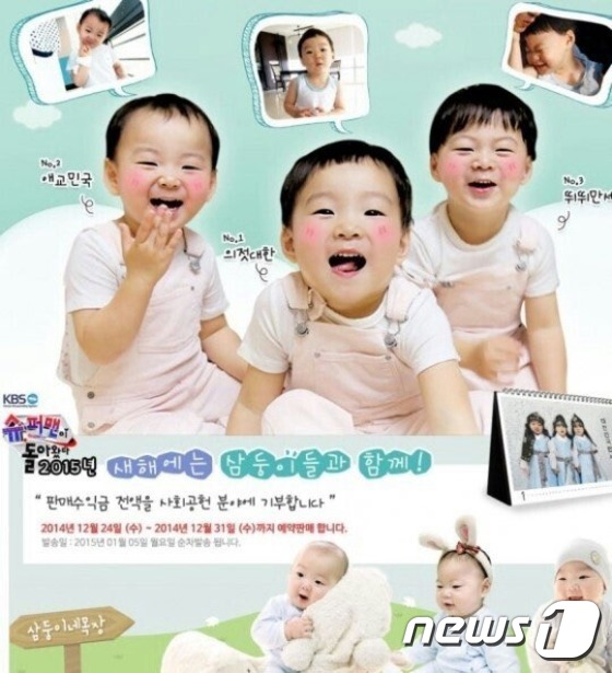 달력에는 송씨와 함께 육아프로그램에 출연 중인 대한·민국·만세 등 삼둥이의 모습이 담겨 있다.