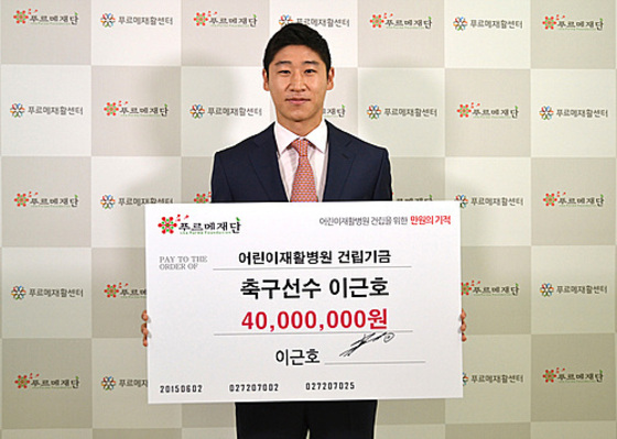 이근호는 2일 서울 종로구 신교동에 위치한 푸르메센터를 찾아 장애 어린이를 위한 재활병원 건립 기금으로 4000만원을 전달했다.