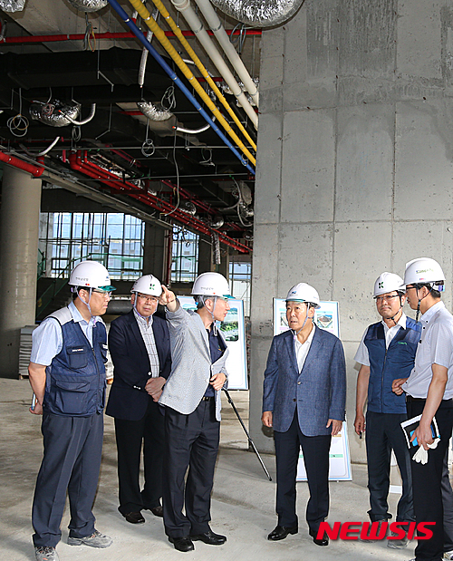 【서울=뉴시스】지난 17일 박홍섭 마포구청장이 서울 상암동에 건립중인 어린이재활병원 및 사회복지설 공사현장을 방문하여 공사현장 관계자와 함께 현장을 둘러보고 있다. 2015.07.20. (사진=마포구 제공)