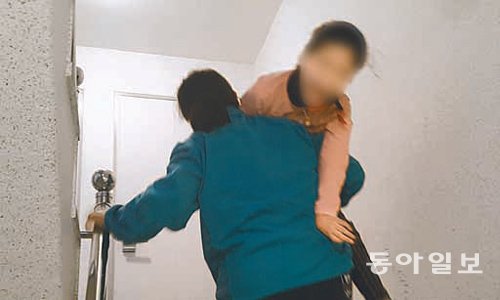 10일 오전 7시 반 서울 은평구의 한 빌라. 1층까지 계단 40여 개. 아름이(가명·10·뇌병변 1급) 엄마 김정덕(가명·45) 씨가 집 밖을 나와 가장 먼저 마주하는 관문이다. 김 씨는 아름이를 한쪽 어깨에 올렸다. 다리가 후들거려서 걷고 서기를 반복했다. 고통스러운 소리가 나올까 봐 입술을 앙다물었다. 가까스로 아름이를 차에 내려놓고 허리를 폈다. 김 씨의 입술에는 잇자국이 선명했다.