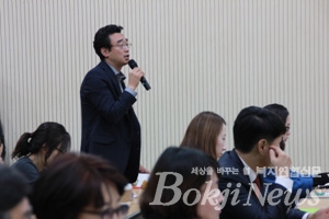 건우아빠 김동석씨가 이목희 의원에 질문 하는 모습