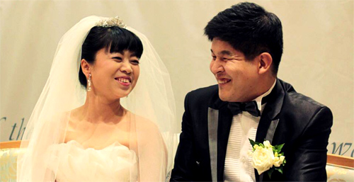 2013년 4월 결혼식을 올린 지적장애인 서혜경(왼쪽), 유지용 씨 부부. 이들은 “비장애인이 생각하기에는 다소 부족해보일지라도 서로 의지하며 잘살고 있다”며 결혼 생활에 만족하고 있다. 서혜경 유지용 씨 제공