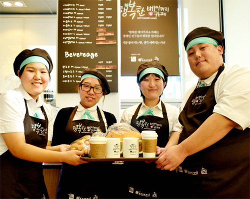 서울 종로구 신교동에 있는 ‘행복한 베이커리&카페’ 1호점에서는 따뜻한 아메리카노 커피 한 잔을 2000원에 판다. 평균 4000원가량인 유명 프랜차이즈 커피 맛과 견줄 만했다. 계산대 옆에는 쿠키와 빵도 놓아둔다. 겉보기에는 여느 평범한 커피숍과 같다. 장애인 두 명, 비장애인 두 명이 함께 근무하고 있다는 점만 다르다.