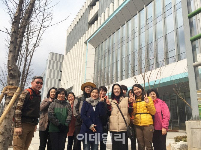 지난 12일 최저기온 영하 2도의 꽃샘추위에도 한씨는 회원 13명과 서울 마포구 상암동 하늘 공원 일대 등 다섯 번째 코스를 완주했다. 푸르메재단이 다음달 말 어린이재활병원 개소에 앞서 개인 기부자들에게 병원 주변을 걸어보고 건물 내부를 소개하는 시간을 갖자고 제안해 의미를 더한 코스였다.