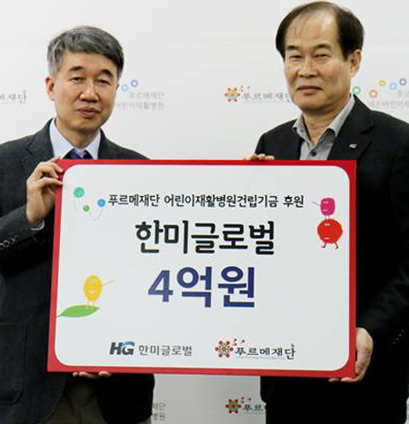 푸르메재단은 국내 기업인 한미글로벌이 이달 말 개원하는 ‘푸르메재단 넥슨어린이재활병원’에 4억 원을 기부했다고 4일 밝혔다.