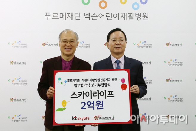 아시아투데이 박지은 기자 = KT스카이라이프가 푸르메재단 넥슨어린이재활병원에 2억원을 기부했다.