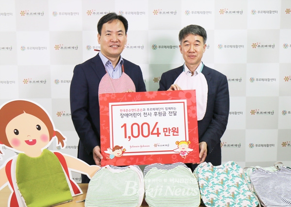 2년째 기부 인연… 한국존슨앤드존슨 전 임직원 손수 제작한 유아용 턱받이 100개 선물