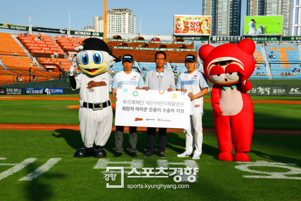 시구행사를 마련한 롯데 자인언츠 구단과 넥슨은 이날 박 군의 수술비로 쓰일 1000만원을 기부하고 선수들의 응원 메시지도 전달했다. 또 경기전 야외광장 부스를 마련, 1000만원 기부 스티커를 판매하고 기부자에게 다양한 기념품을 제공했다.