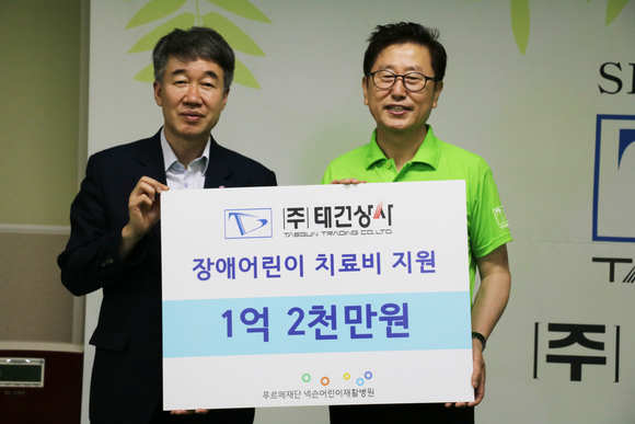 태건상사는 지난 18일 장애어린이의 재활치료를 돕기 위해 푸르메재단 넥슨어린이재활병원과 협약을 맺고, 매월 1천만원씩 1년간 후원하기로 했다고 밝혔다.