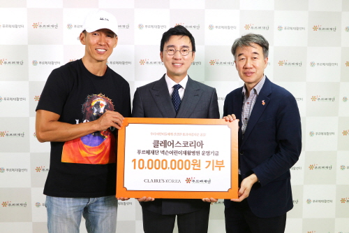 [서울파이낸스 김태희기자] 클레어스코리아가 푸르메재단의 넥슨어린이재활병원에 장애 아동을 위한 기부금 1000만원과 1500만원 상당의 기부물품을 전달했다고 26일 밝혔다.