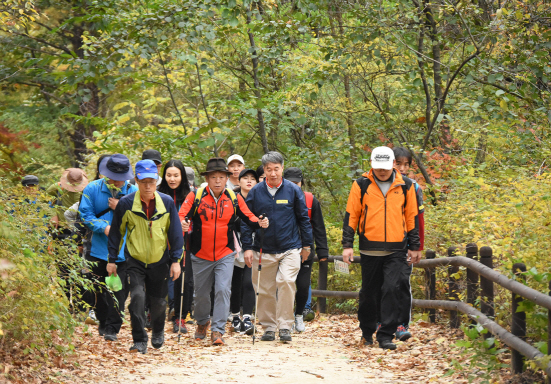 푸르메재단이 주최한 ‘엄홍길 대장과 함께 하는 한 걸음의 사랑 1주년 기념 걷기 행사’에서 행사 참여자들이 산행을 하고 있다. (사진=푸르메재단)