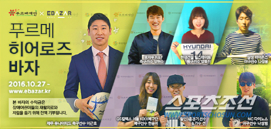 이번 바자에는 축구 이근호·장현수 선수, 야구 나성범·나성용 선수, 배구 한송이·양효진 선수, 푸르메재단 홍보대사이자 철인3종경기 선수인 가수 션이 등이 함께 한다.