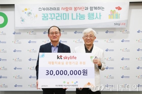 임직원들의 봉사활동과 더불어 회사도 기부에 동참했다. KT스카이라이프는 총 3000만원 상당의 기부를 통해 재활치료 기구와 문화체험티켓 등을 지원했다.