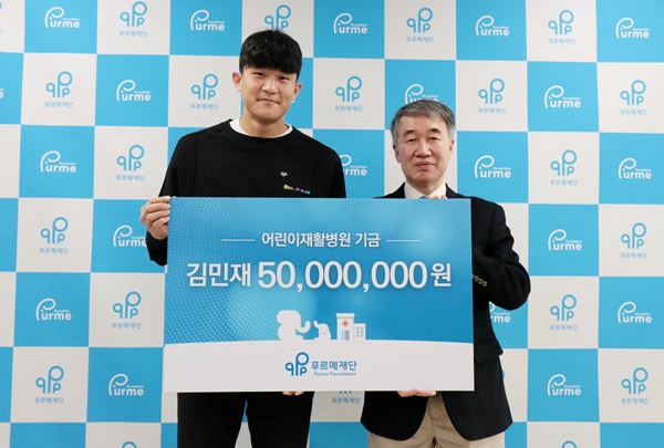 지난해 푸르메재단 홍보대사로 위촉된 후 김민재는 푸르메어린이재활병원 장애어린이를 위해 5000만 원을 기부한 바 있다. 최근에는 발목 수술 후 잠시 재활하는 시간을 보내는 중에도 푸르메재단과 소통을 유지하면서 장애어린이를 위해 써달라며 5000만 원을 전달했다.