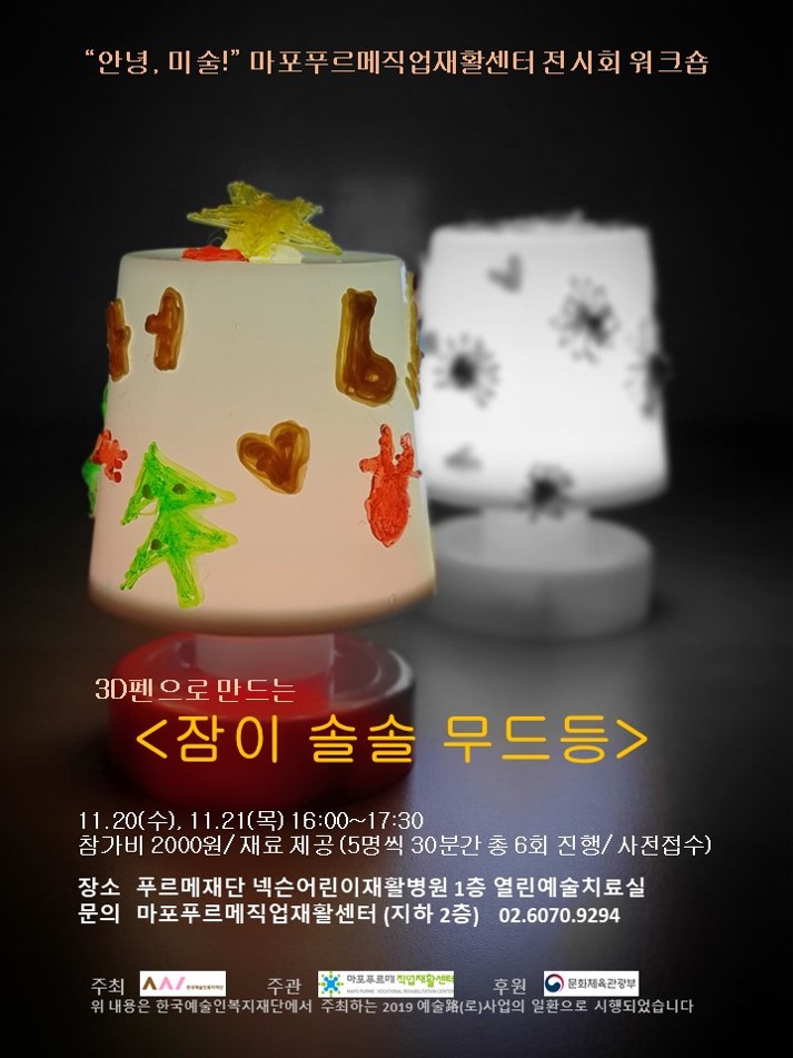 11월 20일과 21일 양일간 ‘3D펜으로 만드는 잠이 솔솔 무드등’ 원데이 클래스도 예정되어 있으니 많은 참여 부탁드립니다.