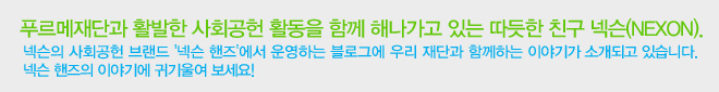 10월 기획 포스팅으로 푸르메 재단과 넥슨의 이야기를 조금 더 깊게 알려드리려 합니다.