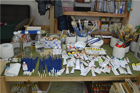 그리고 그 옆에는 색색가지 물감이 가지런히 놓여 있었습니다.