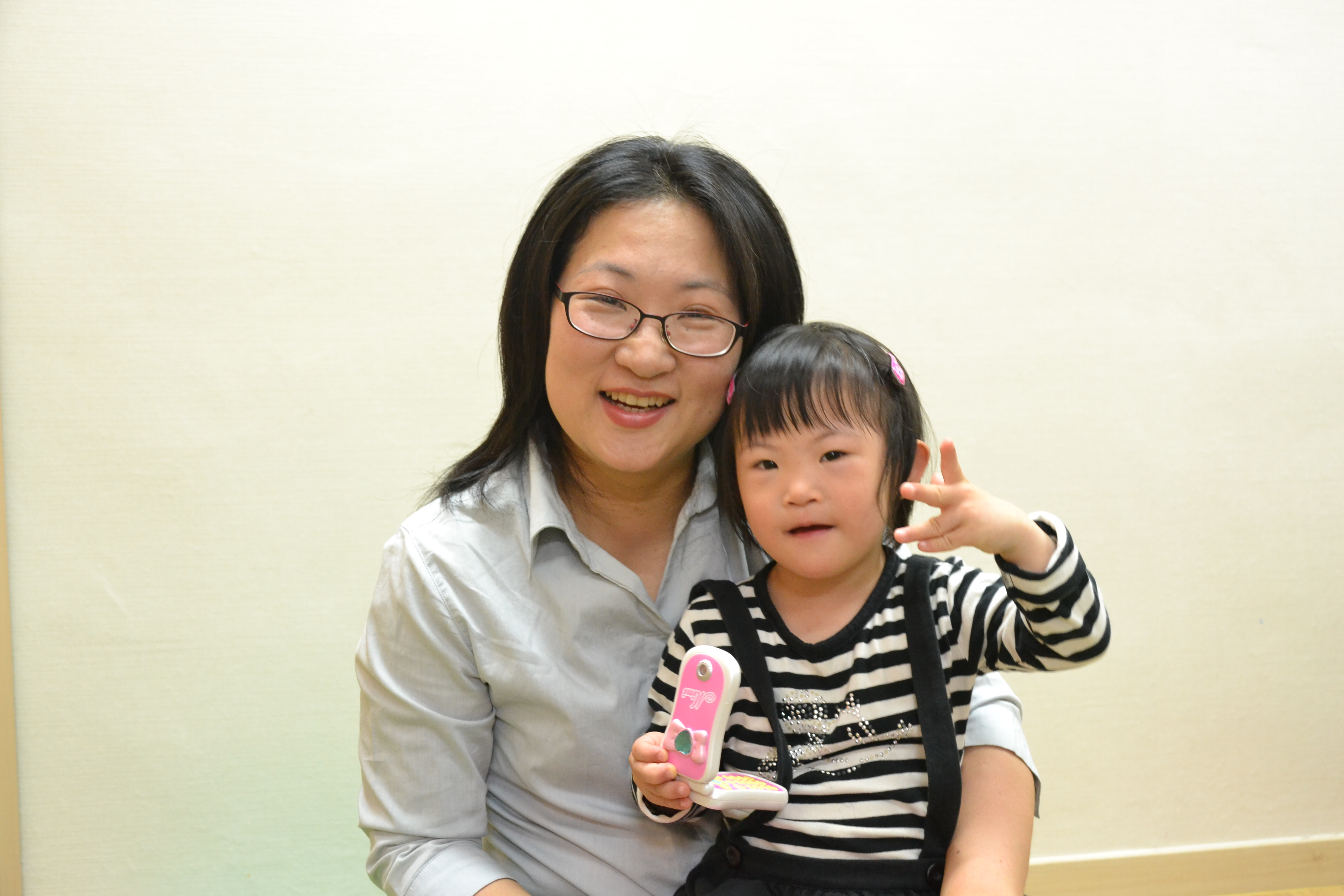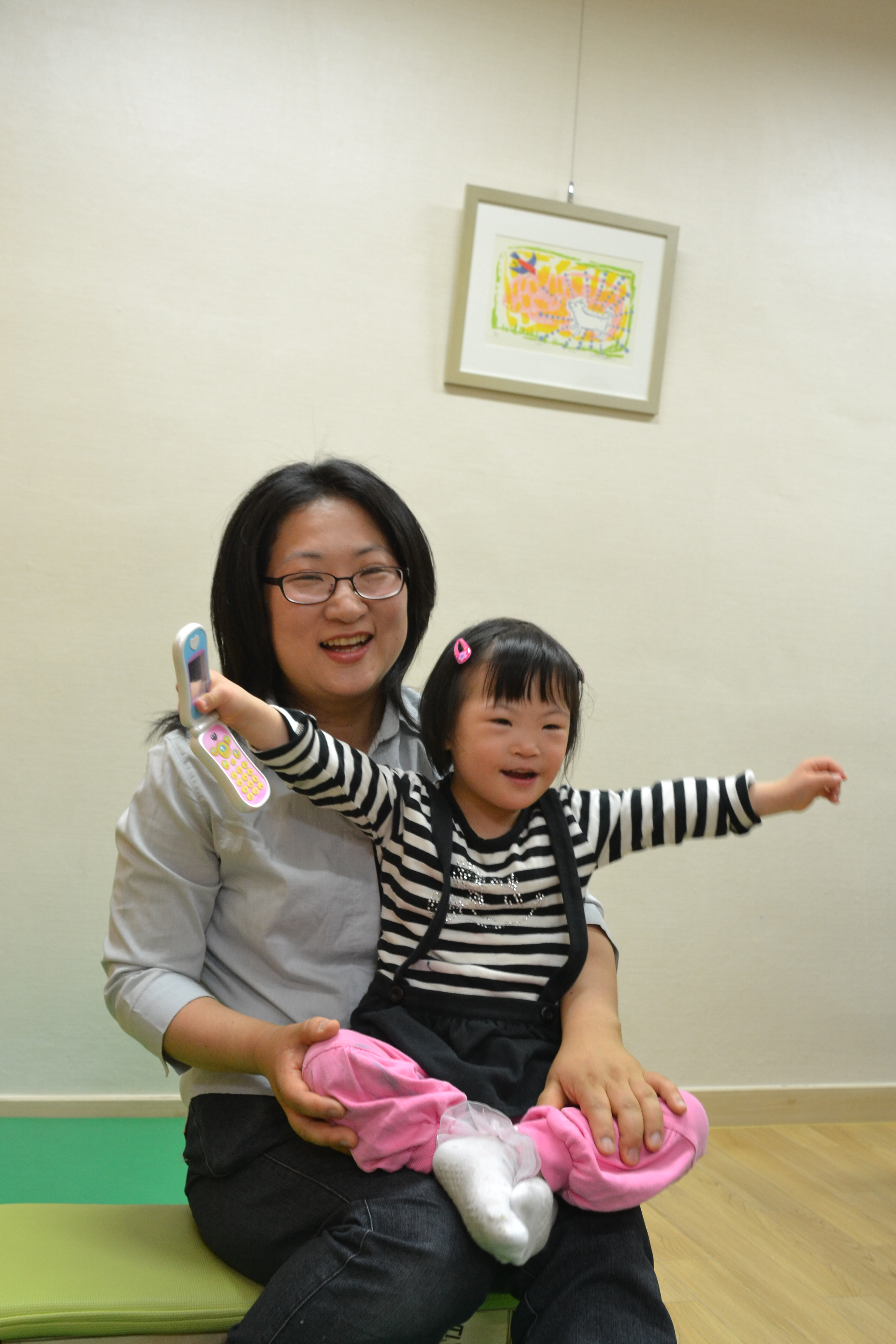 차이가 말도 못하게 커요. 전과 후가 확연히 다르죠. 나날이 달라지는 아이를 보면서 ‘이런 면도 있었네?’하면서 놀라요. 말도 점점 늘고 다 알아듣는데 어제는 ‘나도 할래’라고 했다가 오늘은 ‘나도 할래요’라고 해요. 대소변도 다 가리고 밥도 알아서 먹고요. 치료사들이 주의를 주면 잘 듣고는 잘 따르죠. 또 지은이는 응용력이 뛰어나요. 혼자서 책읽기를 좋아하는데 저랑 같이 읽은 책의 내용을 자기 방식대로 다양한 모션으로 표현하기도 해요.