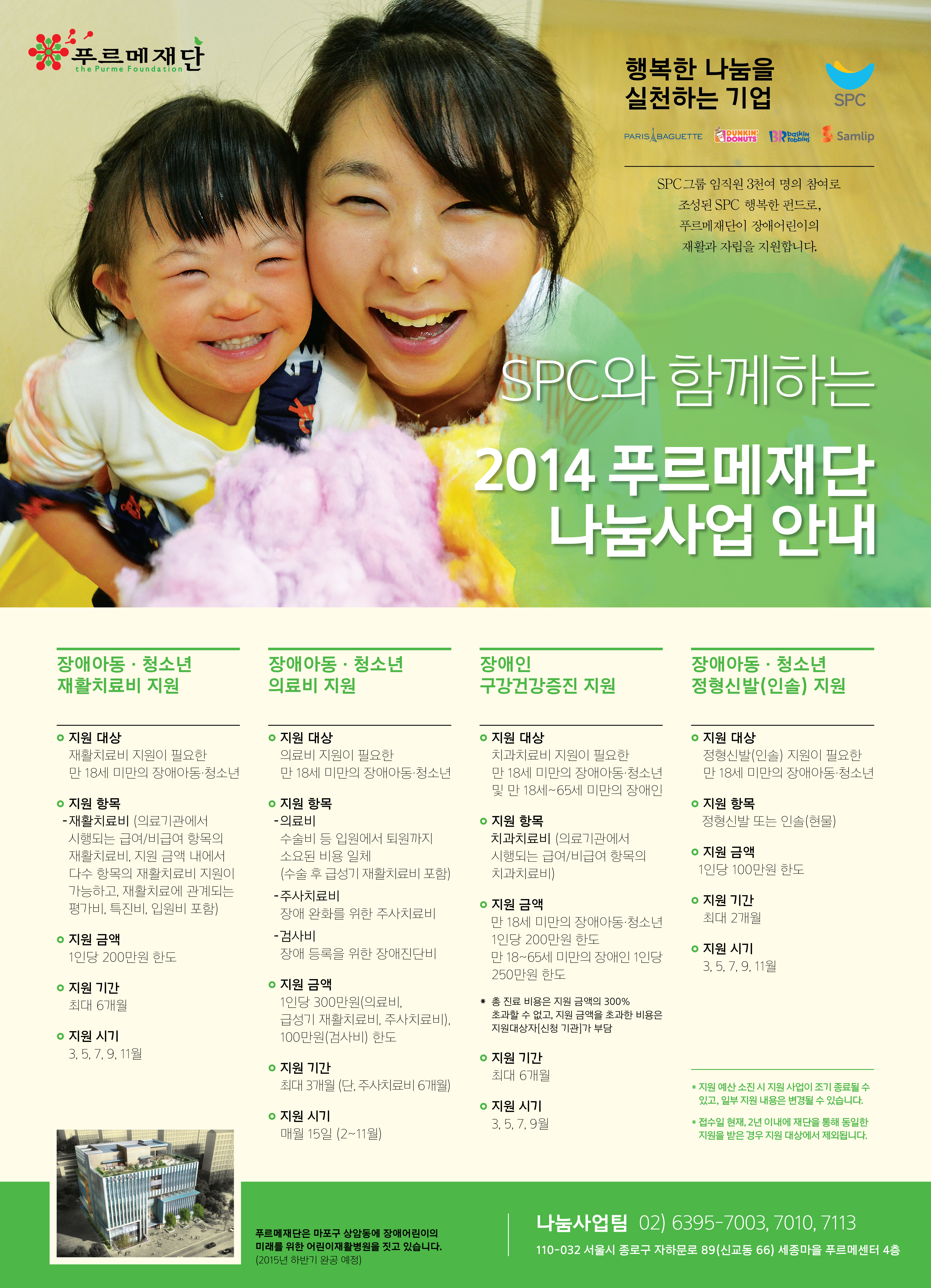 낯익은 얼굴의 모녀. 아이는 푸르메재단 나눔사업 홍보모델로 출연해 초승달 같은 눈웃음으로 사람들의 시선을 붙잡고, 엄마는 한번 들으면 절대 잊지 못할 호탕한 웃음으로 걸음을 멈추게 합니다. 푸르메재활센터를 폴짝폴짝 뛰어다니며 치료 받는 것을 좋아하는 작고 예쁜 아이와 나중에 커서 베푸는 어른이 되길 바라는 엄마. 스치기만 해도 긍정의 에너지를 ‘만땅’ 충전시키는 이 모녀는 푸르메재활센터의 마스코트입니다.