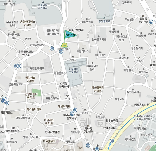 더착한커피 혜화점은 2013년 문을 열었습니다. 무척 좋아하는 ‘커피’와 ‘기부’를 동시에 하고 싶어 직장을 그만두고 시작한 일입니다. 시끌벅적한 대학로에서 살짝 비켜나 학교와 주택가로 둘러싸인 혜화동 끝자락에 자리를 잡았습니다. 초기에는 한적한 분위기에 손님이 없을까봐 마음을 졸였지만 이내 기우란 걸 알았습니다. 나홀로 왔다가 친구들을 데려오거나 가족 단위로 찾아오면서 직장인, 학부모, 대학생, 동네주민 등 손님 구성이 다양해졌습니다. 지금은 발 디딜 틈 없이 붐벼 그런 걱정을 잊은 지 오래입니다.