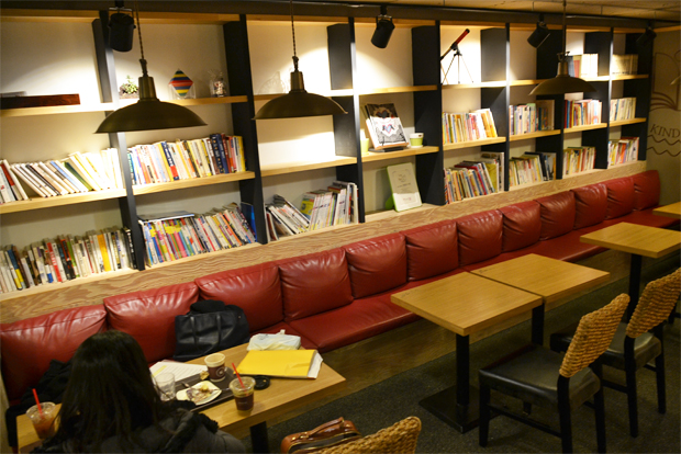 나무탁자에 폭신한 의자, 곳곳에 걸린 사진이 아늑하고 편안한 분위기를 냅니다. 입소문을 타더니 방송사와 잡지사 촬영 장소로도 여러 번 협찬했습니다. 더착한커피 지점의 공통된 특징 중 하나는 벽면을 차지하는 높다란 서가. 지점마다 서가의 컨셉이 다른데 혜화점은 온통 책으로 채워 북카페 같습니다. 진열된 책들은 일일이 읽고 합격받은 좋은 책들만 꽂았습니다. 유독 어린이 책들이 많아서 엄마랑 아이가 즐겨찾는다고 합니다.