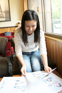 ![]() | 이 모든 과정을 어시스턴트 없이 혼자서 진행한답니다. 종이와 펜으로 그린 스케치를 스캔해 포토샵으로 색과 대사를 입혀 완성합니다. 댓글들이 증명하듯 첫 회부터 끝까지 건너뛰지 않고 다 본다는 의미의 ‘정주행’을 하게 만드는 이야기는 매번 구상해서 만든다고. 간혹 일부 내용을 지적하는 의견이 달리면 놓치지 않고 기억했다가 반영합니다. “댓글을 계속 남겨주시는 분들은 이제 친구처럼 느껴져요. 계속 관심 갖고 봐주시는 분들이 힘이 되죠.” 가장 좋아하는 만화가 ‘밥줄’이자 ‘가장 잘할 수 있는 일’이 되었다는 조하영 작가. 게다가 더 나은 세상을 위해 자신이 잘하는 일로 나눔까지 실천하는 기부자. “해보고 싶은 이야기들이 자꾸 생겨나서 다양한 소재로 다양한 이야기를 보여드리고 싶어요. 요즘 자극적인 만화들이 많은데요. 그렇다면 자극적이지 않은 만화들도 많이 있어야하지 않을까요? 편안하고 친근하게 느낄 수 있는 만화를 꾸준히 그리고 싶습니다.” 언젠가 사촌 언니 이지선 홍보대사처럼 책을 내고 싶다는 그녀의 다음 이야기가 궁금해집니다. |