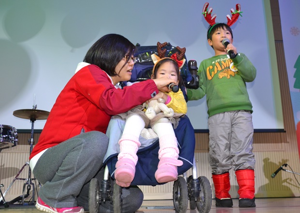▲ 2012년 푸르메작은음악회에 참석해 노래를 부르고 있는 은영이와 영진이(오른쪽 / 푸르메재단 DB).