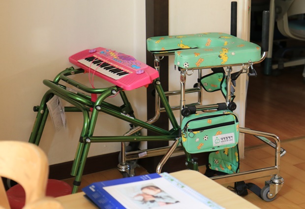 “올해는 걸을 수 있을 거야”라며 손녀에게 파이팅을 외치는 강임순 씨의 말처럼 몸에 힘이 없어서 잘 넘어졌던 은영이는 재활치료를 통해 팔로 짚고 일어서는 게 가능해졌고 다리를 지탱하는 힘도 훨씬 좋아졌습니다. 치료사들의 아낌없는 칭찬과 격려로 편안한 분위기에서 치료 받은 덕이기도 하지만, 집에서의 재활 연습도 한몫했습니다. “뒤에서 골반을 잡아주고 앞에서 무릎 펴기를 도와주면 걷는 자세가 좋아집니다”라는 노효선 씨의 말을 듣고서야 보조신발, 스탠더, 재활 자전거 등 집안 곳곳 ‘상시 대기’ 중인 치료기구가 비로소 눈에 들어옵니다.