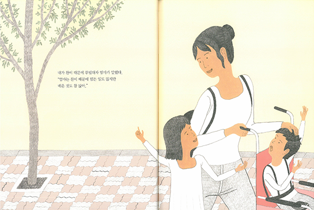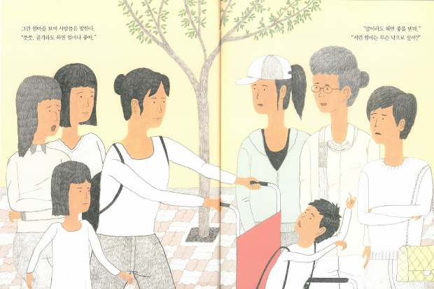 찬이가 휠체어를 타고 지나갈 때마다 사람들은 쯧쯧 혀를 차며 한 마디씩 내뱉습니다. 걸음을 멈추고는 신기한 듯 빤히 쳐다보기도 합니다. 큰 상처가 되는지도 모른 채 무심코 내뱉는 비수 같은 말들과 불쾌한 시선. 신경 쓰지 않고 웃어넘기려 해도 자꾸만 엄마는 눈물이 납니다.
