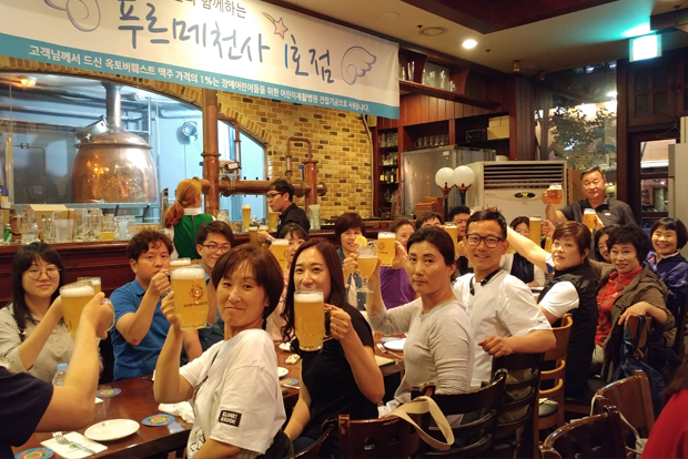 이날 모임은 특별한 곳에서 마무리하기로 했습니다. 푸르메재단 설립의 밑거름이 된 ‘옥토버훼스트’. 푸르메재단 백경학 상임이사님이 어린이재활병원 건립의 필요성을 절감하고, 재단 설립 자금을 마련하기 위해 세운 맥주전문점입니다.