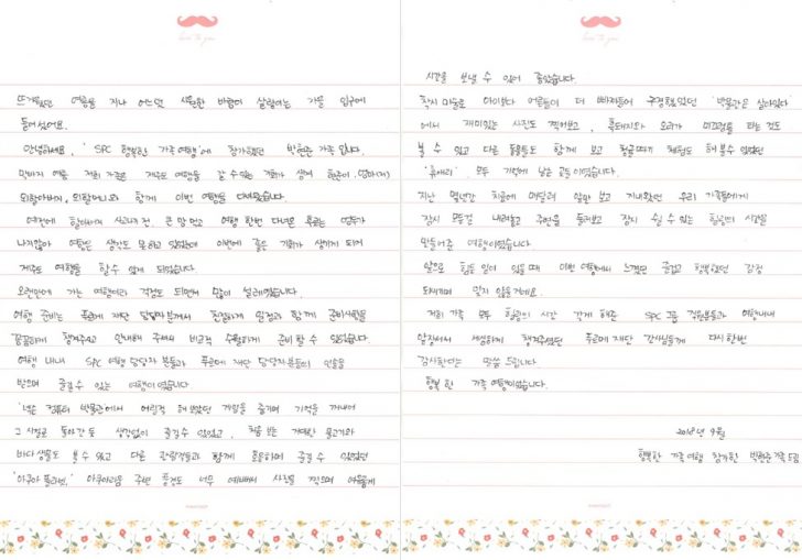 저희 가족 모두에게 힐링의 시간을 갖게 해준 SPC그룹 직원 분들과 여행 내내 앞장서서 세심하게 챙겨주셨던 푸르메재단 간사님들께 다시 한 번 감사의 말씀을 드립니다.