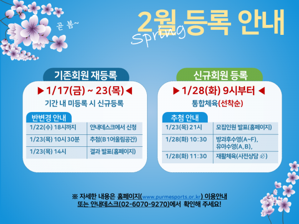 마포푸르메스포츠센터 ‘2월 수강생 모집’
