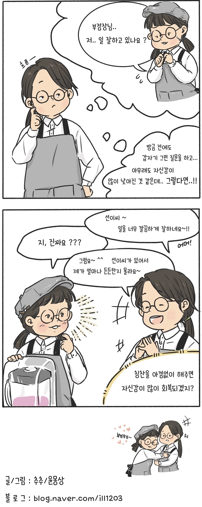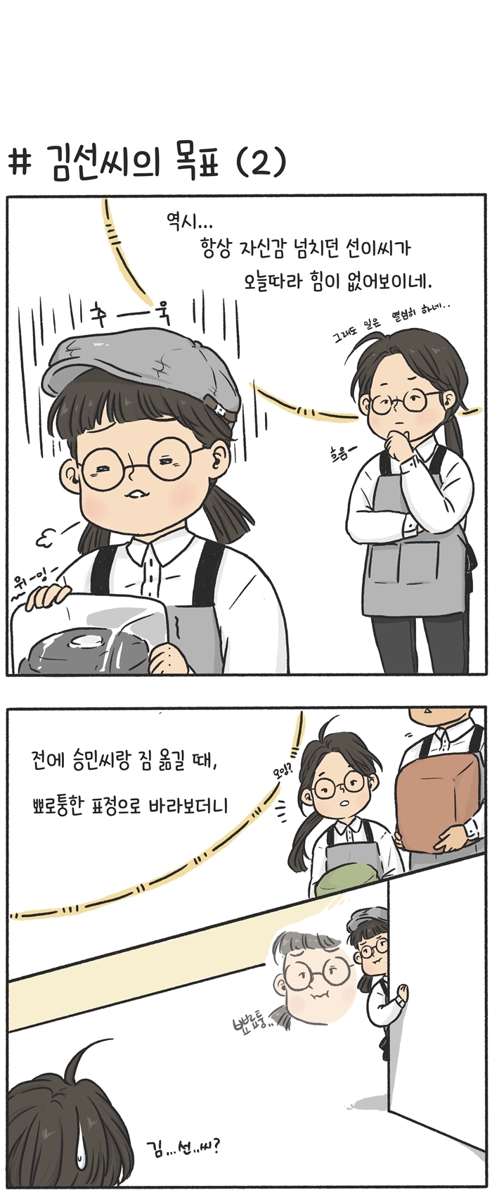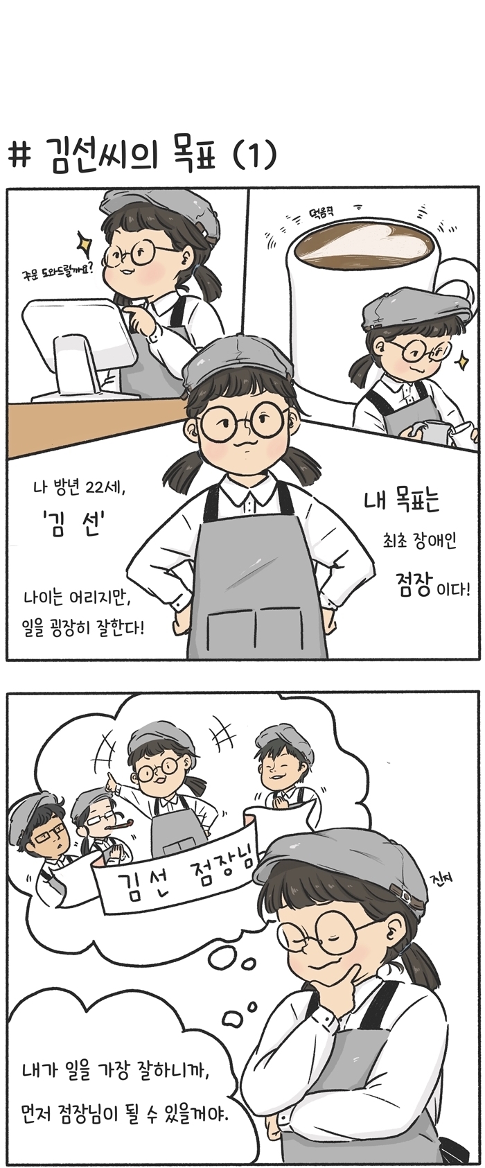 스토리 푸르메재단, 그리고 함께하는 사람들의 이야기입니다. 거북일기5. 김선씨의 목표 2020.08.03 *글= 추예진 점장 (행복한베이커리&카페 고덕점)*그림= 윤상일 점장 (행복한베이커리&카페 종로점) 기부하기 이전 화 보기 목록 메뉴 목록으로