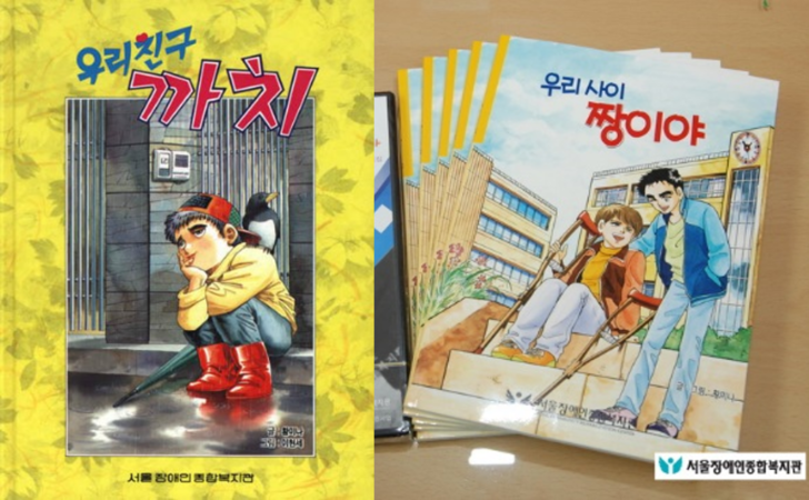 서울장복의 콘텐츠 제작 및 활용능력은 1982년 개관 이래 가장 큰 자랑거리 중 하나입니다. 40년 가까운 시간 동안 시대의 변화에 발맞춰 다양한 콘텐츠 제작물을 기획하고 배포한 것으로 유명해요. 80년대 당시 우리나라에서는 장애 관련 자료를 구하기 매우 어려웠습니다. 이때 서울장복이 앞장서서 각종 교재 및 전문서적을 번역하고, 유명 만화가 황미나·이현세 등을 섭외해 어린이 인식개선 만화책, 애니메이션을 제작했죠.