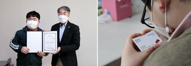 오전 8시. 여주시 한 보호작업장에 불이 켜지더니 한 명 두 명 사람들이 모여듭니다. 들어오자마자 발열체크를 하고 옷을 갈아입고 자리에 앉습니다. 그 과정이 마치 오랫동안 이곳에서 일한 사람처럼 자연스럽지만, 이들은 지난해 10월 채용돼 이제 막 정식 임명을 받은 푸르메소셜팜의 1기 직원입니다. 여주에 짓고 있는 푸르메소셜팜이 완공되려면 최소 6월 말, 온실 부분도 3월 말은 돼야 작업이 가능하기 때문에 그때까지는 이곳에서 일을 하게 됩니다.