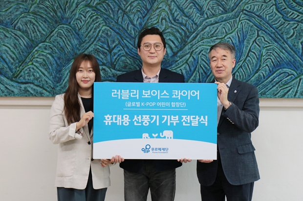 지난 8일, 푸르메재단을 방문한 러블리보이스콰이어는 아이들이 좋아할 아기자기한 캐릭터로 장식된 휴대용 선풍기 1000개를 전달했습니다.