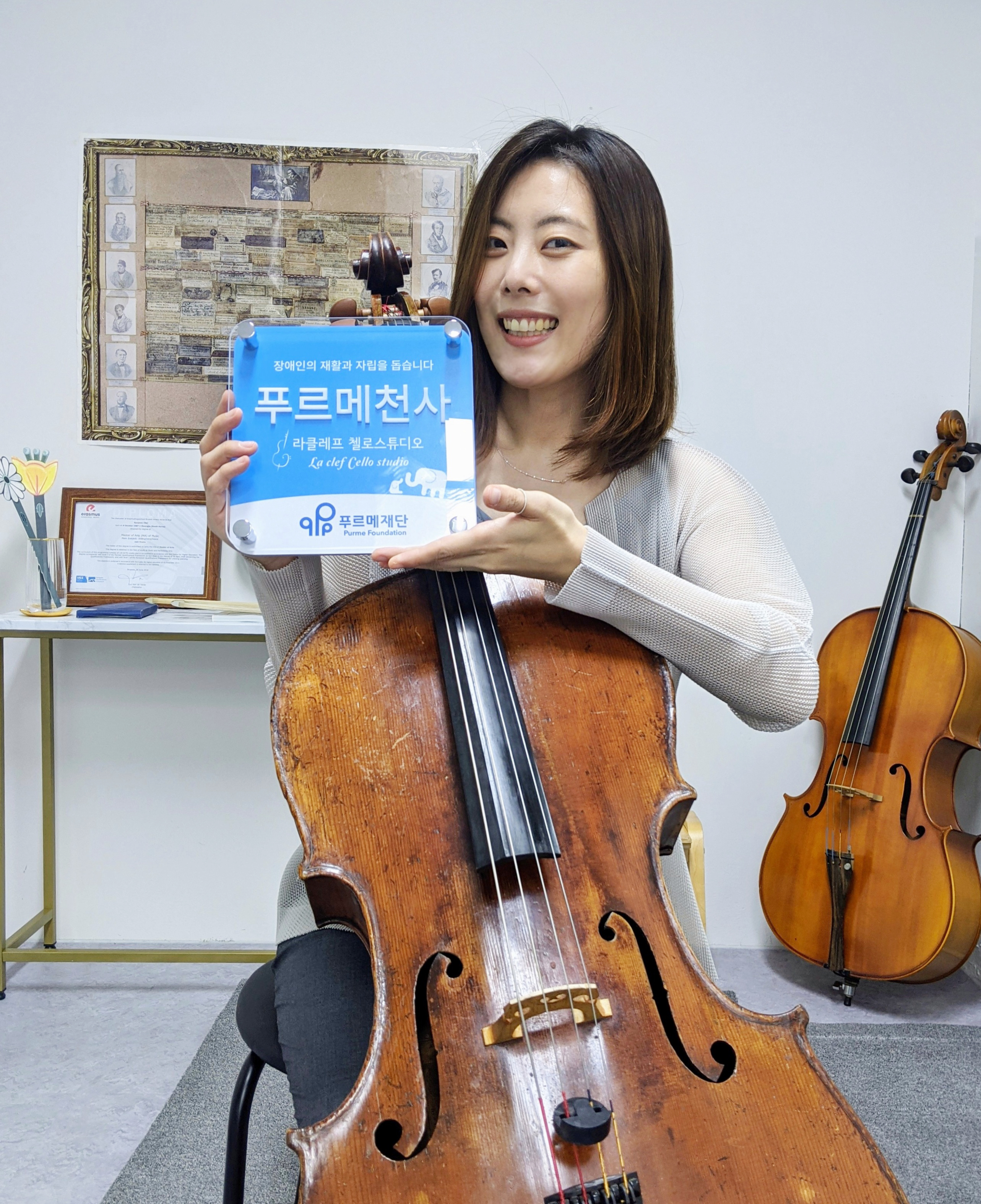 “피아노나 바이올린과 비교해 첼로는 쉽게 다가가긴 어려운 악기라는 인식이 강해요. 이러한 생각이 바뀌어 누구나 첼로를 편하게 즐길 수 있길 바라요” 라클레프 첼로스튜디오 최규연 원장은 스튜디오를 찾는 이들에게 음악의 세계를 열어주는 열쇠가 되겠단 마음으로 올 5월 강원도 원주혁신도시에 문을 열고 푸르메천사가게의 길을 걷고 있습니다.