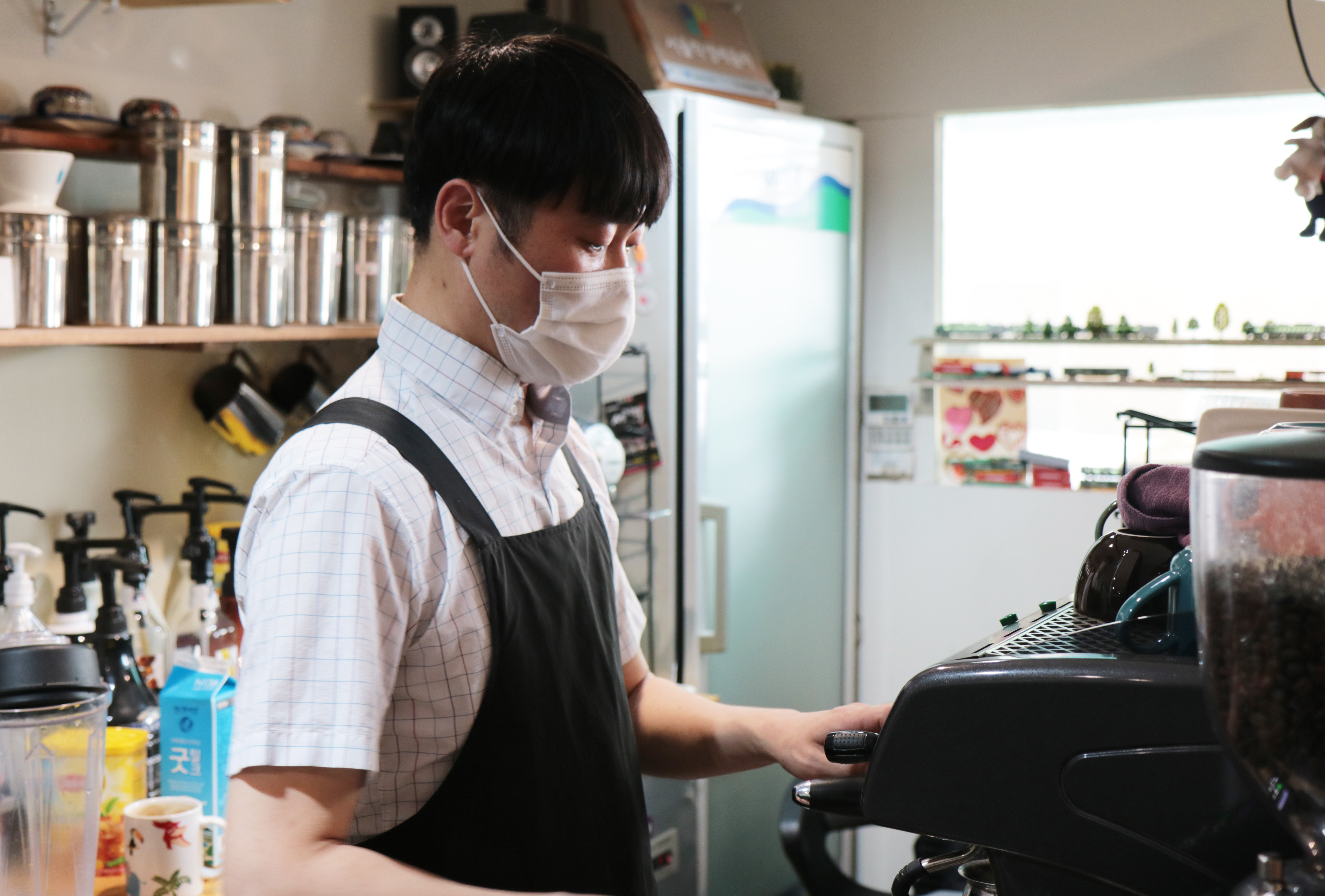 카페지기는 유독 단골손님이 많습니다. 손님의 취향을 기억했다가 커피를 내린다는 정재민 대표의 세심함도 한몫했겠지만, 카페지기의 매력은 바로 지역 주민들과 함께하는 나눔입니다. “손님이 스탬프 쿠폰을 모아 모금함에 넣으면 한 장당 커피 한 잔으로 계산해 가게 이름으로 기부해요. 내가 자주 찾는 가게가 세상에 도움 되는 일을 했다고 하면, 가치 있는 소비에 뿌듯할 거예요”