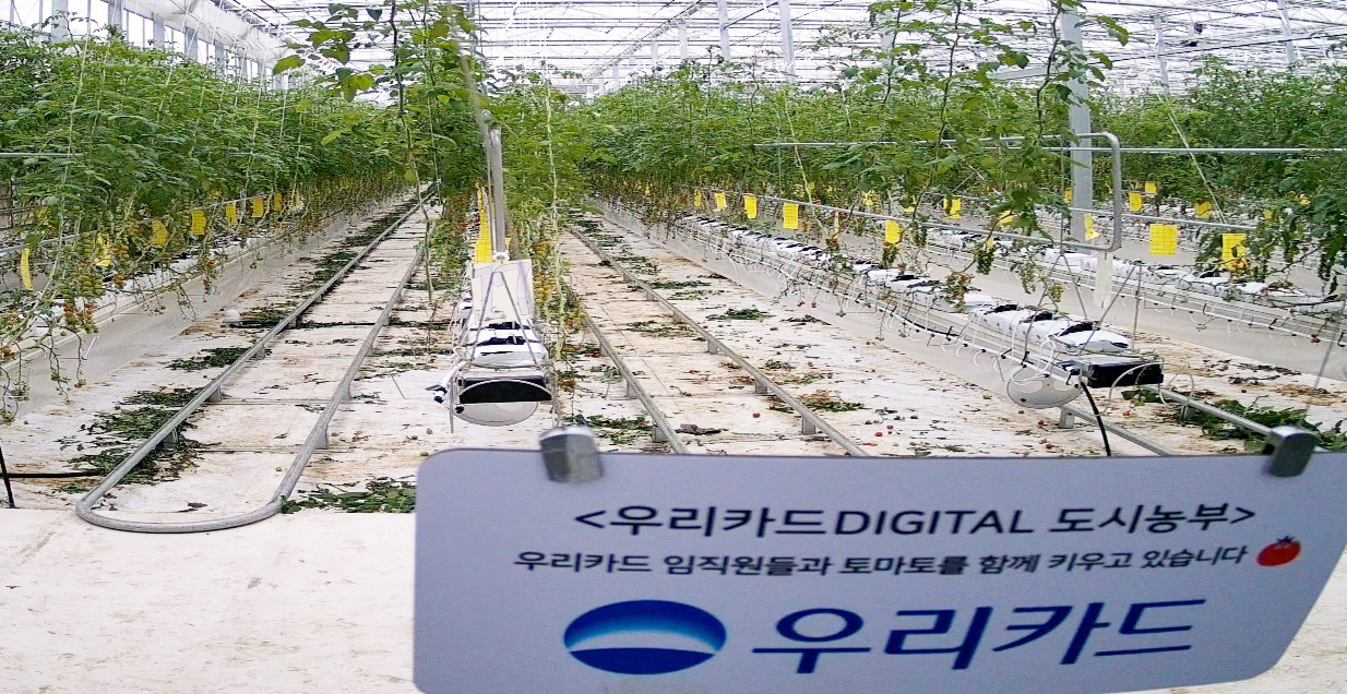 우리카드는 발달장애 청년들을 위한 희망 일터 '푸르메소셜팜'과 함께 따뜻한 세상을 만들어 갑니다. 우리카드 임직원들로 구성된 디지털 도시농부는 청년 농부들이 더 행복하게 일할 수 있도록 유리온실 내 방울토마토의 생육을 돕는 보광등(식물성장조명)을 지원하고, 청년 농부들의 도움을 받아 농사에 도전합니다. 장애인과 비장애인이 더불어 사는 세상, 우리가 꿈꾸는 푸르메소셜팜입니다.