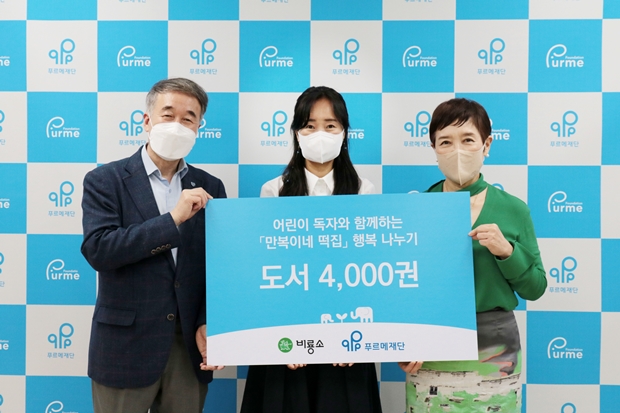 박상희 대표이사를 비롯한 비룡소 임직원들과 김리리 작가는 26일 푸르메재단을 찾아 장애어린이들을 위해 동화책 4,000권을 기부하기로 약속했습니다. 이 책들은 많은 어린이가 함께 즐길 수 있도록 푸르메재단 산하기관에 비치할 계획입니다.