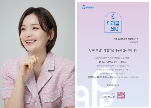 배우 전미도 생일에 나눔을 선물한 ‘서포터즈우렁각시단’